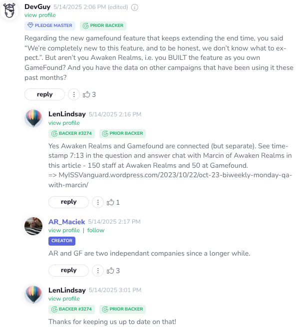 Confirmed by Awaken Realms: Originally (in the old days) Gamefound was kind of like an offshoot of Awaken Realms. But now they are separate entities: