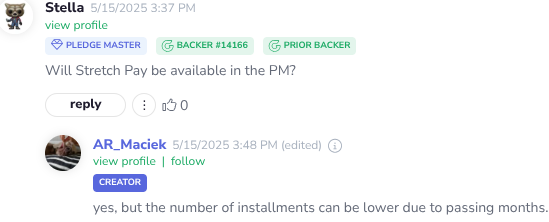 Confirmed by Awaken Realms: If you want a longer time to pay off your pledge … the stretch pay during the initial campaign (and endgame extended time) will be longer (ie, spread out over more months) than if you pledge during the pledge manager. You still can get stretch pay during the pledge manager … it just won’t be stretched out over as many months.