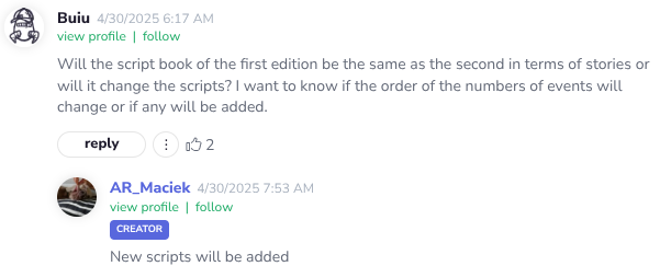 The Script Book will be updated Confirmed by Awaken Realms: The script book will be updated from the 1st Edition script book. Share this: Click to share on X (Opens in new window) X Click to share on Facebook (Opens in new window) Facebook Like Loading... Related Leave a comment Cancel reply Δ