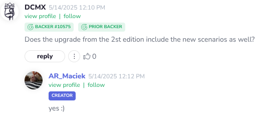 Upgrade Pack INCLUDES all new scenarios Confirmed by Awaken Realms: The Upgrade Pack for 1st Edition owners includes all the new Scenarios! Share this: Click to share on X (Opens in new window) X Click to share on Facebook (Opens in new window) Facebook Like Loading... Related Leave a comment Cancel reply Δ