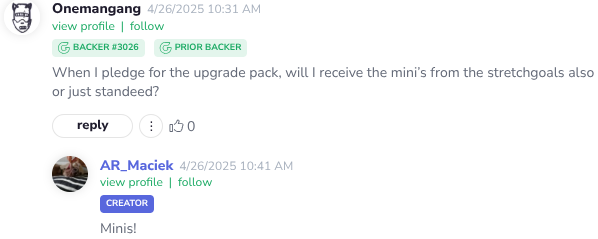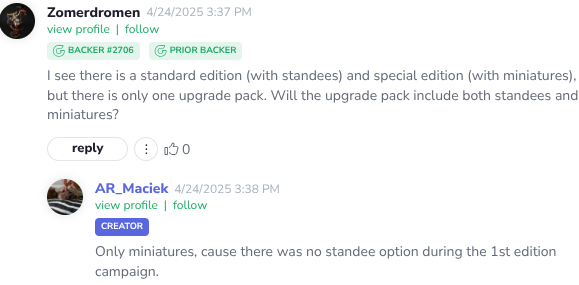 Upgrade Pack is Minis Only (no standees) Confirmed by Awaken Realms: All the stretch goals that are included in the Upgrade Pack will not be with standees – but with miniatures And this clarifies why: Share this: Click to share on X (Opens in new window) X Click to share on Facebook (Opens in new window) Facebook Like Loading... Related Leave a comment Cancel reply Δ